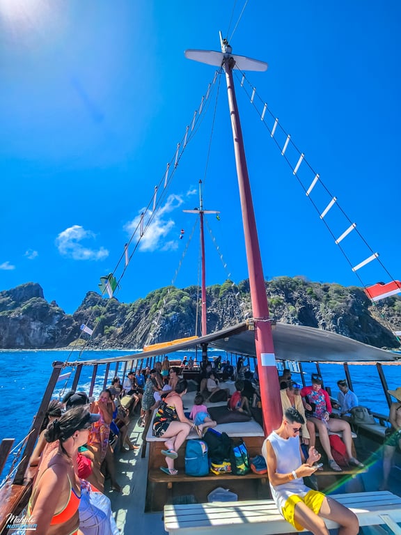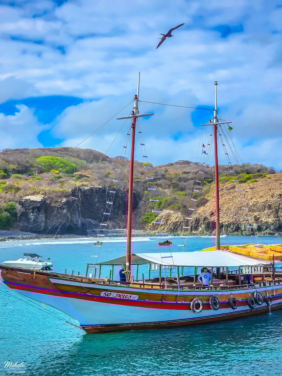 Saímos do Porto de Santo Antônio e seguimos em direção às Ilhas Secundárias, que compõem o arquipélago. Durante o percurso, o passeio proporciona vistas deslumbrantes das Ilhas Secundárias, destacando sua beleza natural única. Em seguida, a embarcação continua seu trajeto até a Ponta da Sapata, oferecendo uma experiência panorâmica ao longo do caminho passando por todas as praias do mar de dentro. Sem esquecer do rugido do leão. O ponto alto do passeio é a parada para banho na Baia do Sancho, que já recebeu diversos vezes o título de Praia Mais Bonita do Mundo. Os visitantes têm a chance de mergulhar nas águas cristalinas e apreciar a rica vida marinha que habita a região. Essa experiência única em uma das praias mais premiadas do planeta e a possibilidade de navegar ao lado dos Golfinhos Rotadores que torna o passeio ainda mais inesquecível.